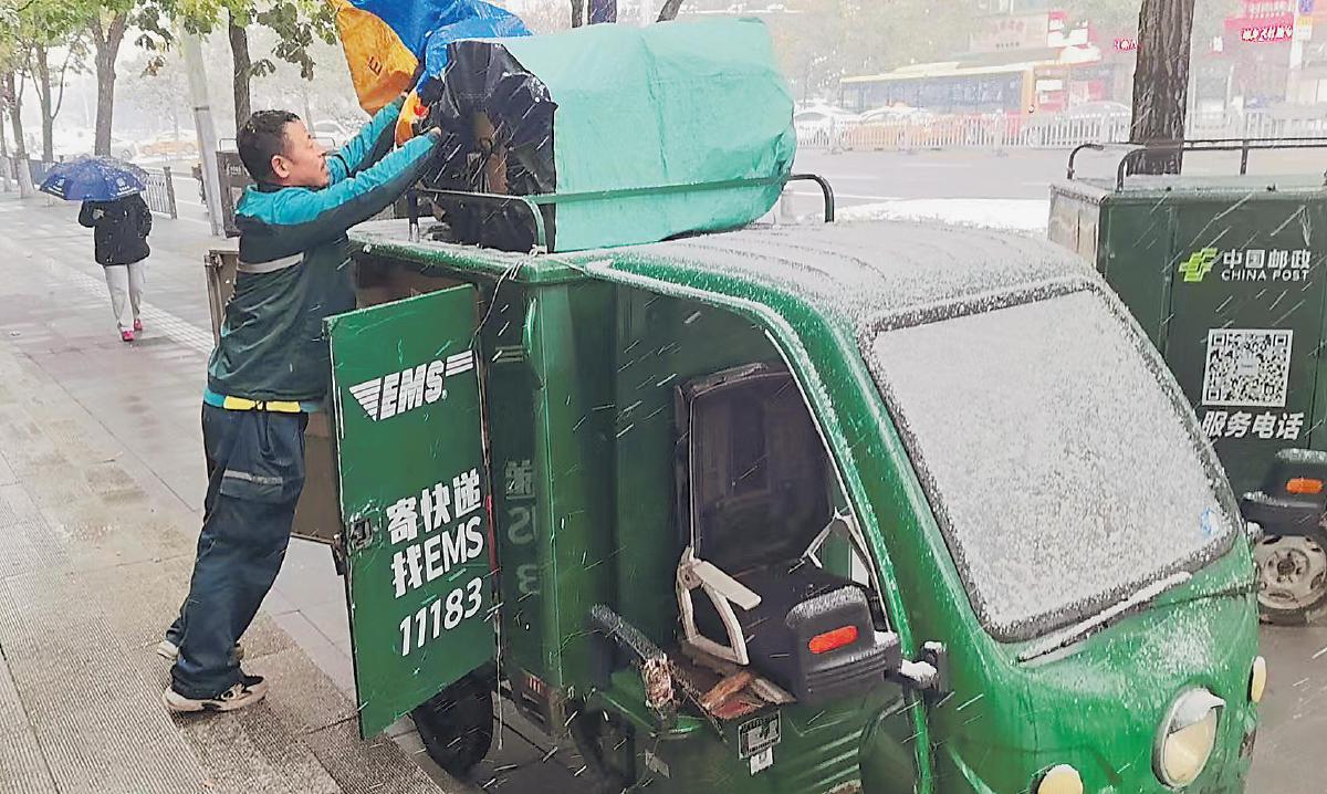 “冰城”初雪中的一抹“郵政綠”